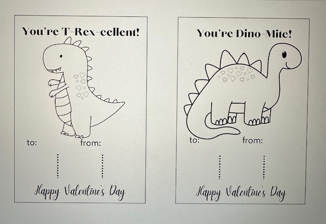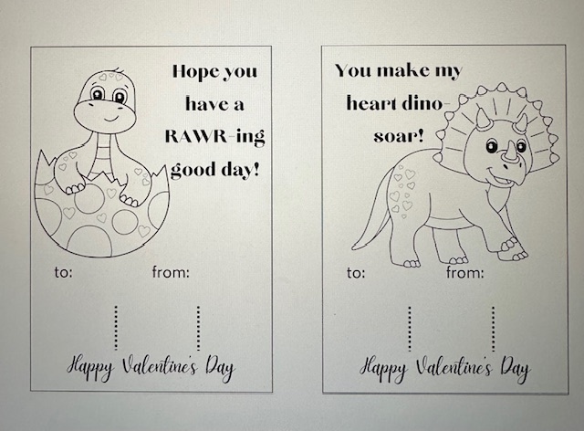 Valentine’s Coloring Cards – Dinosaur Theme (Printable PDF)